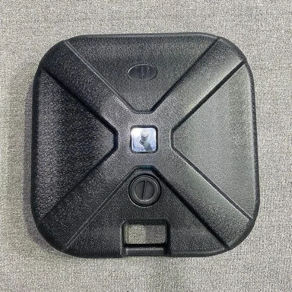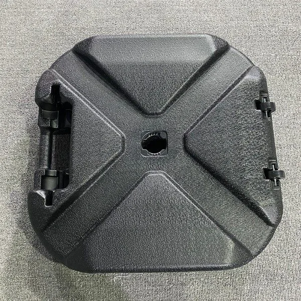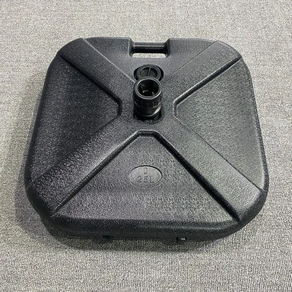 Vår 30L vannbase er laget av tykk værbestandig polyetylen. Utseendet er enkelt svart, og det er forsterket med en X-formet struktur, noe som gjør det veldig stabilt. Basen kommer med et håndtak, som gjør den enkel å flytte; vannpåfyllingsporten er forseglet, noe som gjør fylling og drenering av vann veldig praktisk. Metallstanghylsen i midten er veldig solid, og den kan være kompatibel med flere typer stenger, enten det er paraply, flaggstang eller utendørsskilt. Det fungerer feilfritt for noen av disse. Designet tar også hensyn til det praktiske, ikke bare kan det stabilisere seg uten å svaie i vindfullt vær, men det kan også legge til et snev av eleganse til omgivelsene når den plasseres der.
