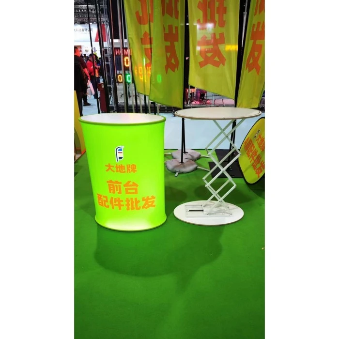 LED Oral Liftable Counter er enkel å montere, lagre og transportere. Det er et reklameutstyr som er egnet for langvarig deltakelse på messer, salgsfremmende aktiviteter og pop-up-butikker. Denne disken bruker paneler av samme størrelse på både toppen og bunnen, noe som gjør den mer stabil og solid. Med de løftende glideskinnene og LED-lysene kan den møte ulike skjerm- og kundeinteraksjonsbehov. Tilpassbare bordplater og tilpassbare stoffmaterialer kan alle hjelpe deg med å oppnå den skjermeffekten du ønsker. Oppsummert er dette produktet et ideelt valg for mobile markedsføringsaktiviteter.