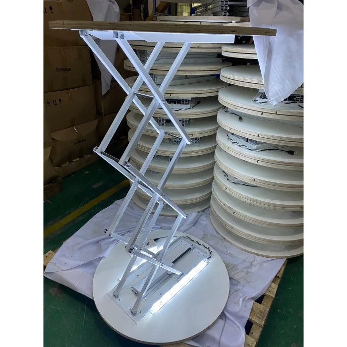 (4) Høy stabilitet: Bakkepanelet i samme størrelse som bordplaten fungerer som underlag, og løfteanordningen av saksetype gjør disken mer stabil.